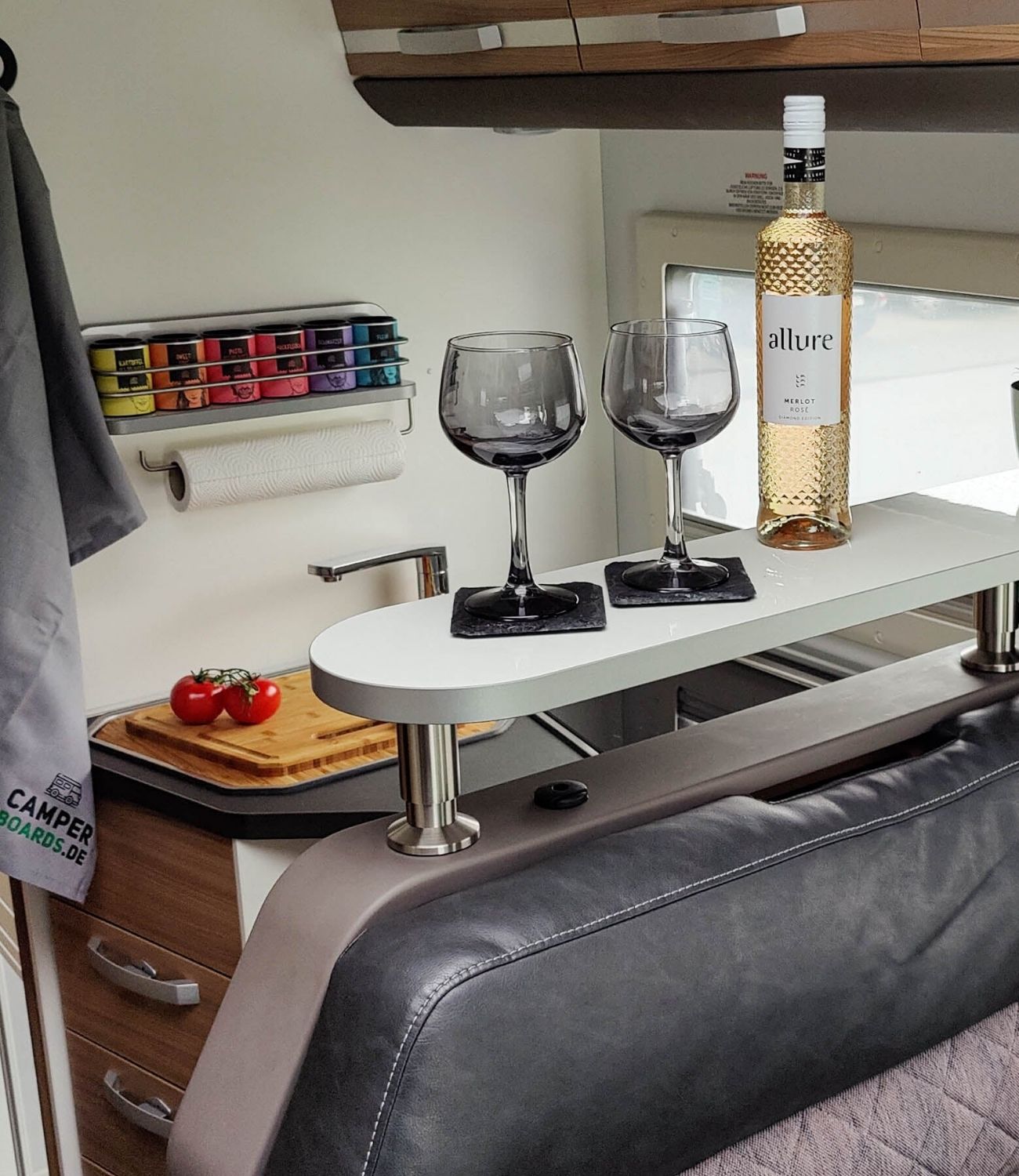 Camperboards is natuurlijk geboren in een camper. Waar laat ik het koffiezetapparaat, waarom zijn de kruiden niet binnen handbereik en waar laad ik nu de mobiele telefoon op?