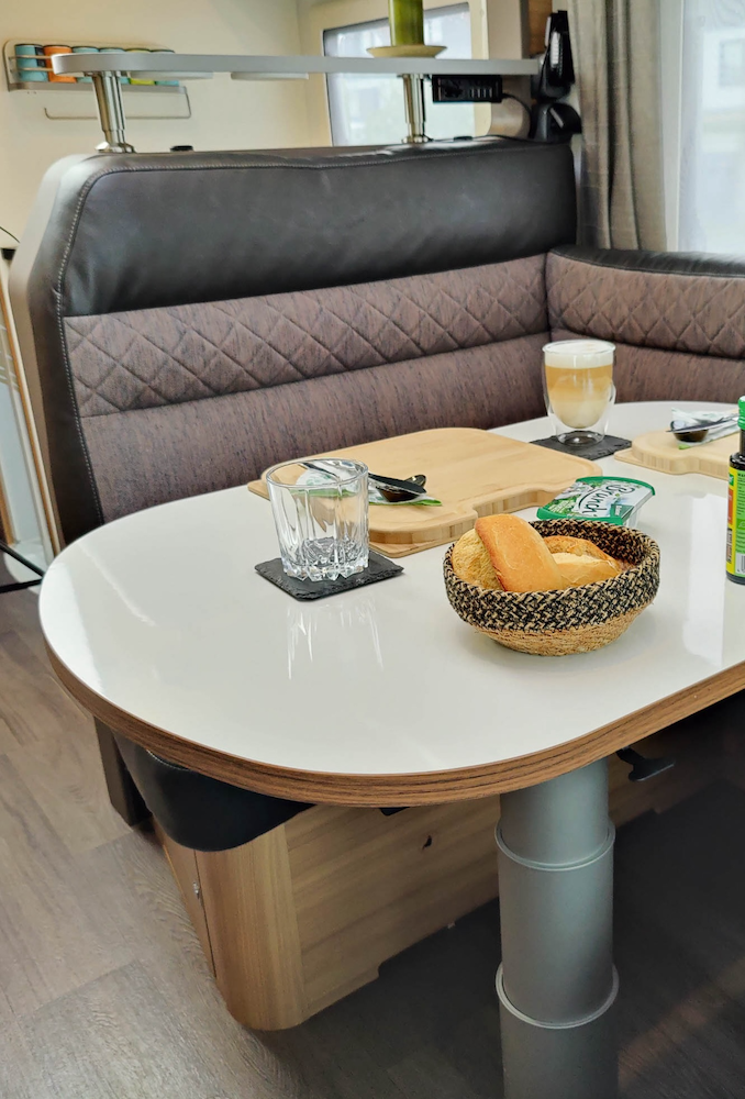 Mobilvetta is altijd een bezoek waard - het bedrijf is gevestigd in Toscane, bekend om glooiende heuvels en middeleeuwse stadjes. Camperboards staat bekend om hoogwaardige opbergoplossingen. De Mobilvetta camper was een bijzondere uitdaging voor ons. Er was geen manier om de hoofdsteunen te verwijderen om de opbergplank te plaatsen. Onze oplossing: we ontwikkelden klemvoetjes die je zonder boren aan de scheidingswand naar de keuken kunt bevestigen.
