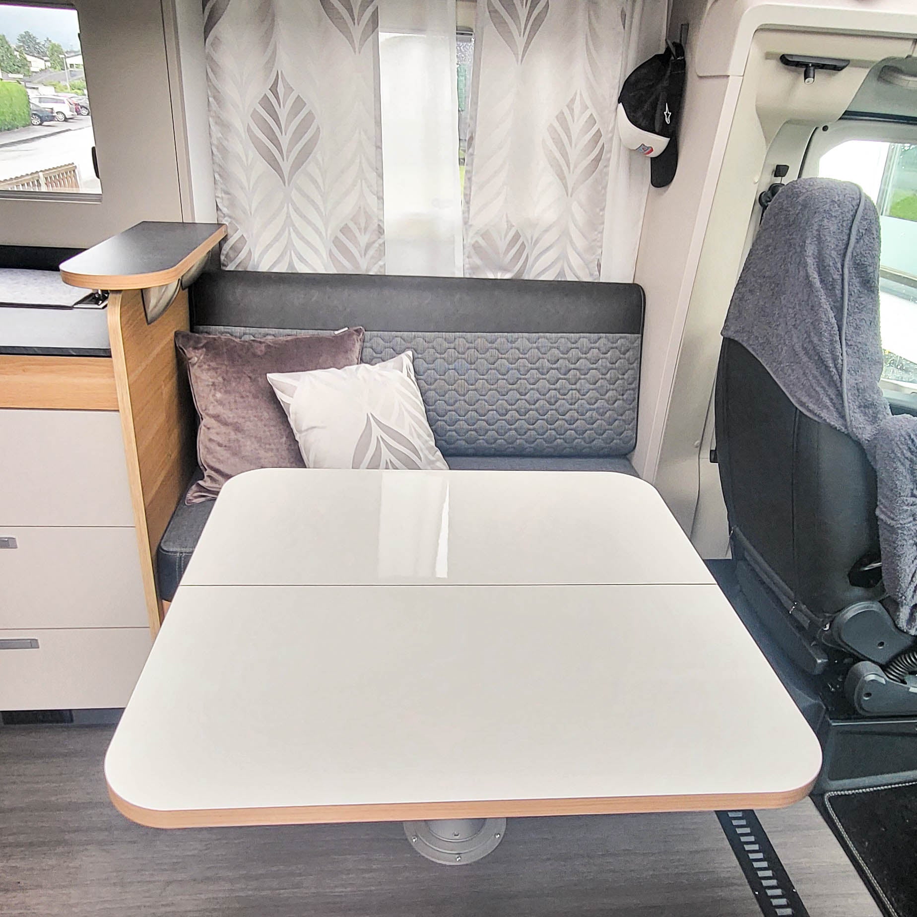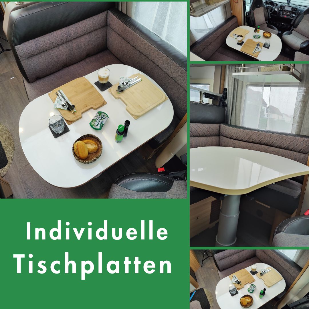 Met onze grote keuze aan kleuren en vormen hebben we voor bijna elk voertuig een geschikt tafelblad. Onze op maat gemaakte tafelbladen passen zich aan je behoeften aan en zijn een hoogwaardig alternatief voor het originele reserveonderdeel.