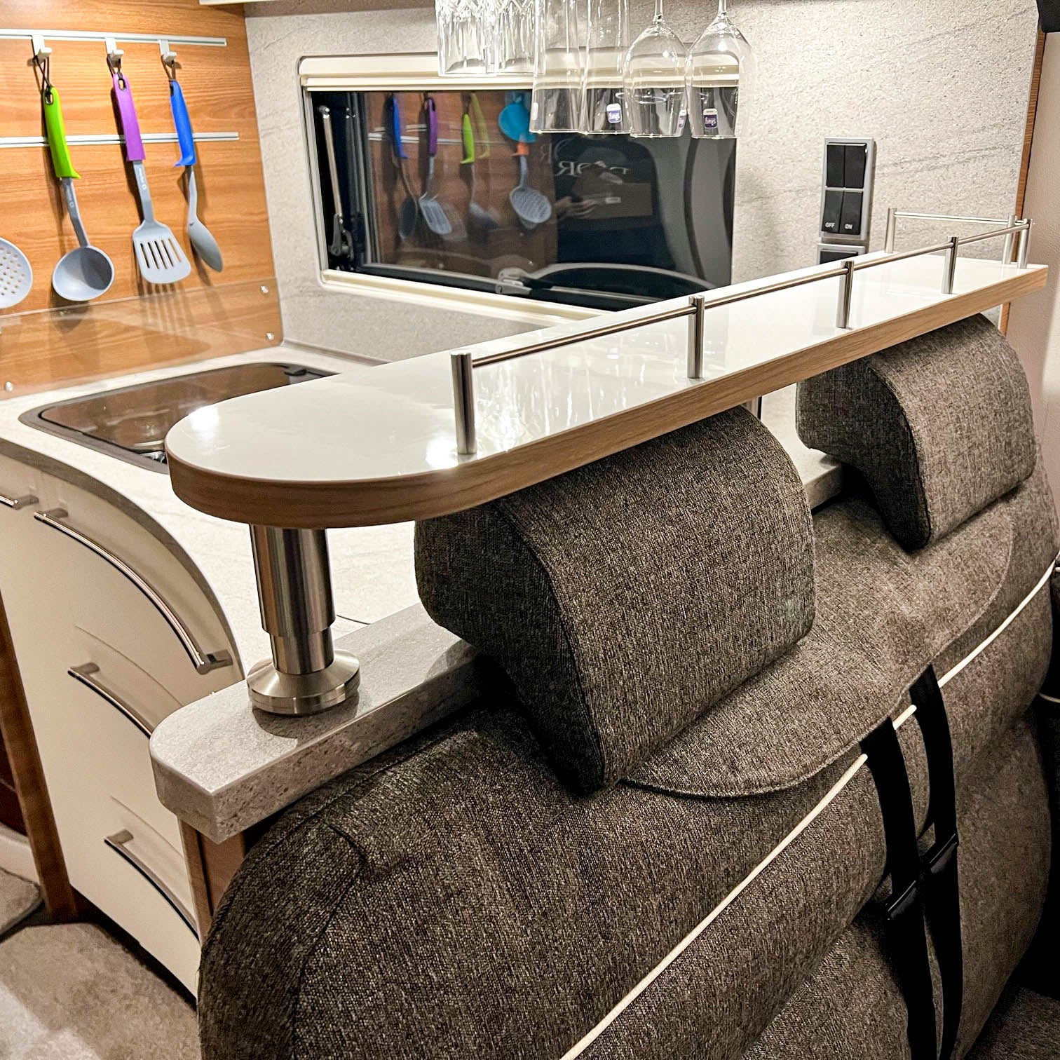 Onze opbergplank in plaats van hoofdsteunen in uw camper