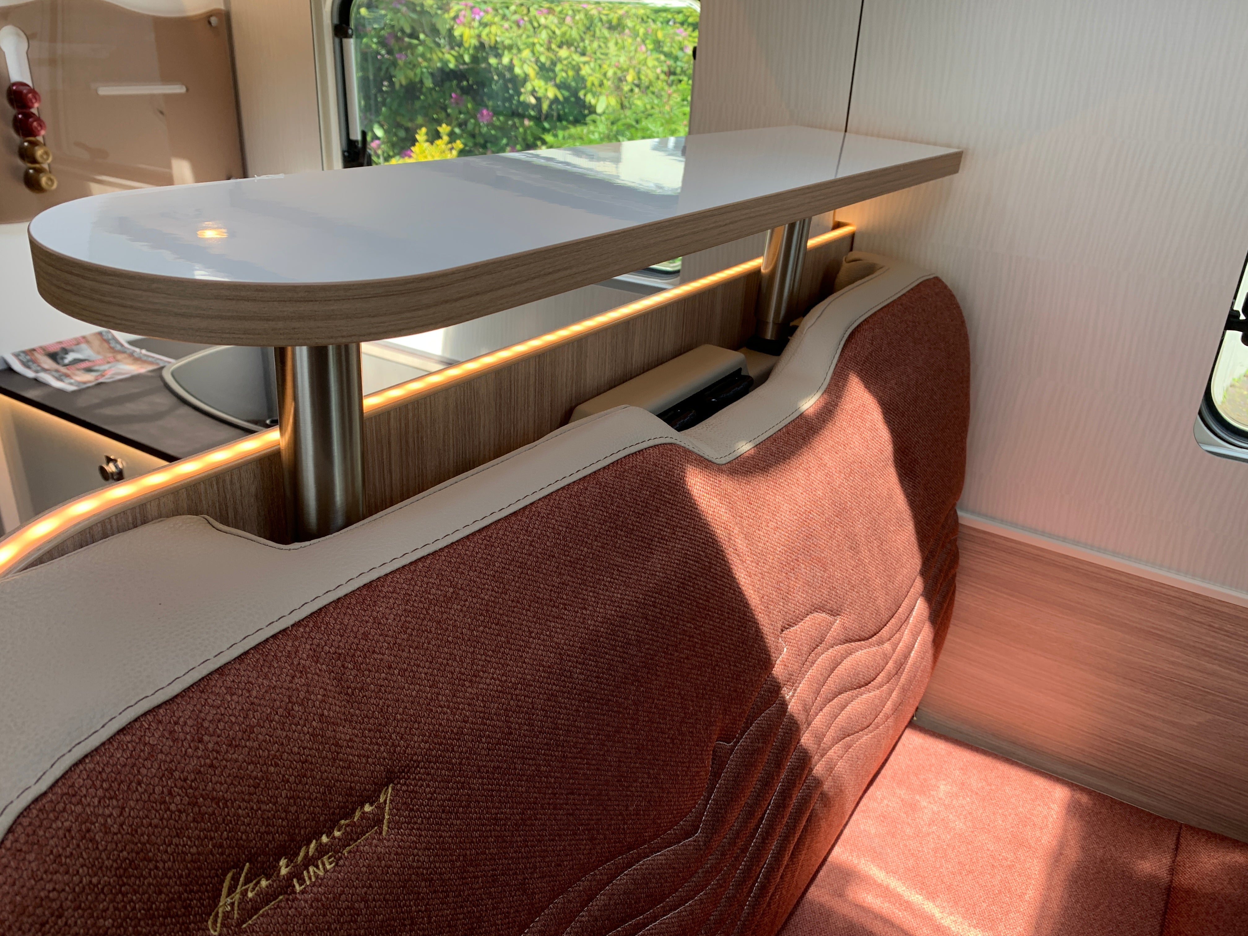 Onze opbergplank in plaats van hoofdsteunen in uw camper