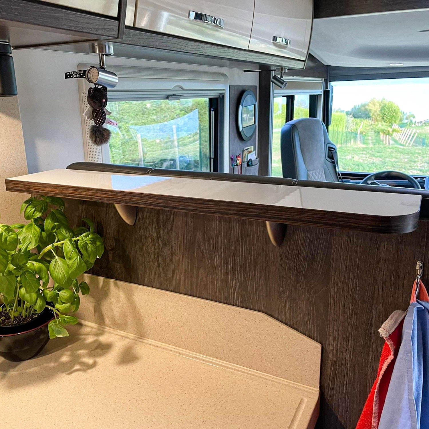 Onze opbergplank in plaats van hoofdsteunen in uw camper