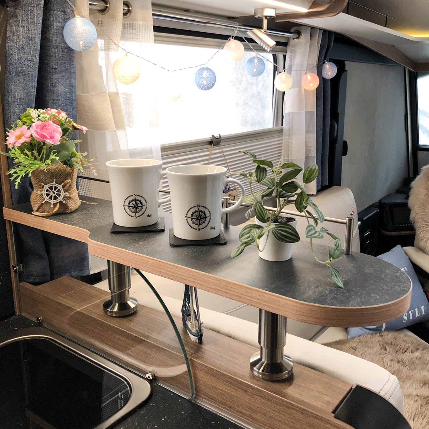 Onze opbergplank in plaats van hoofdsteunen in uw camper