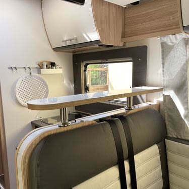 Onze opbergplank in plaats van hoofdsteunen in uw camper