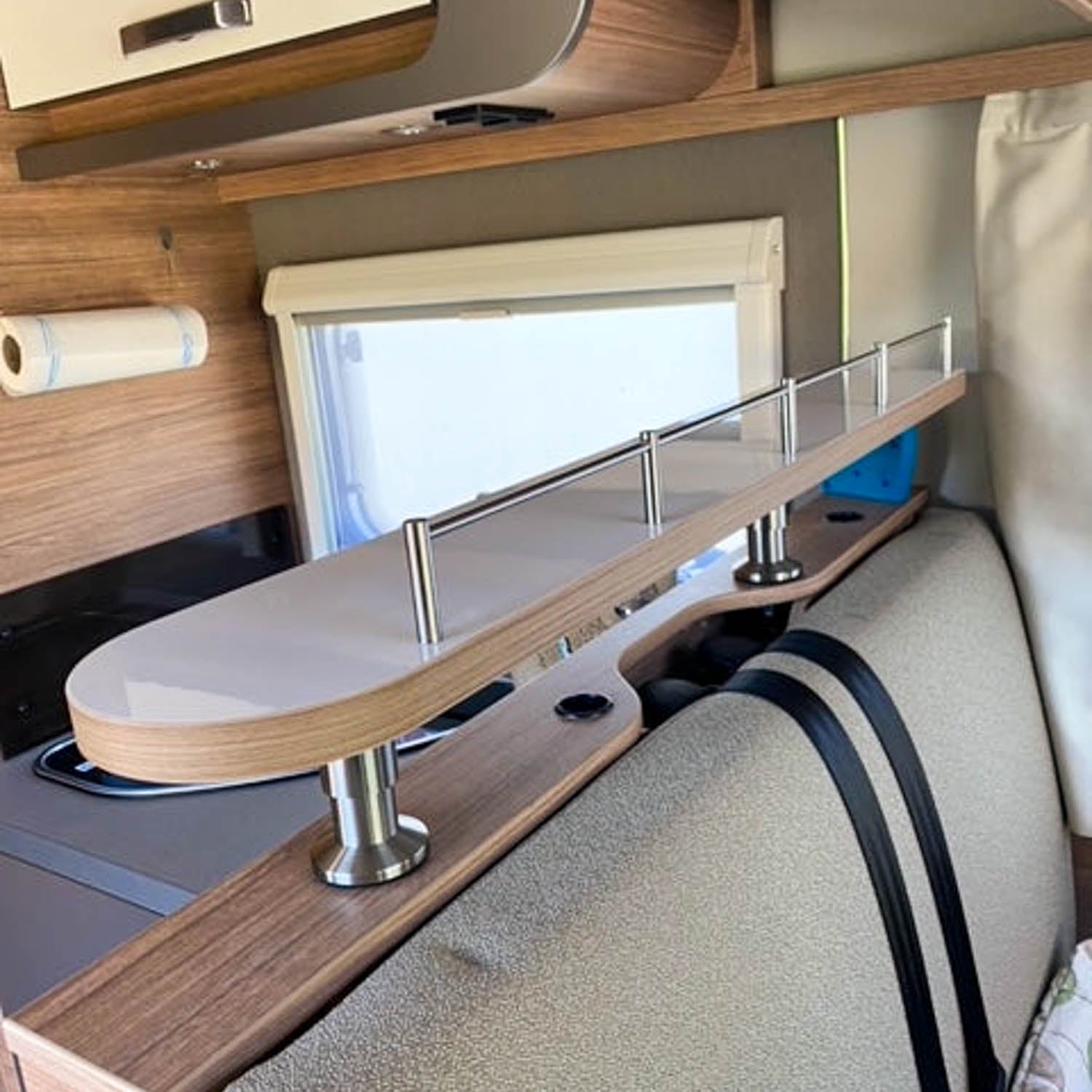 Onze opbergplank in plaats van hoofdsteunen in uw camper