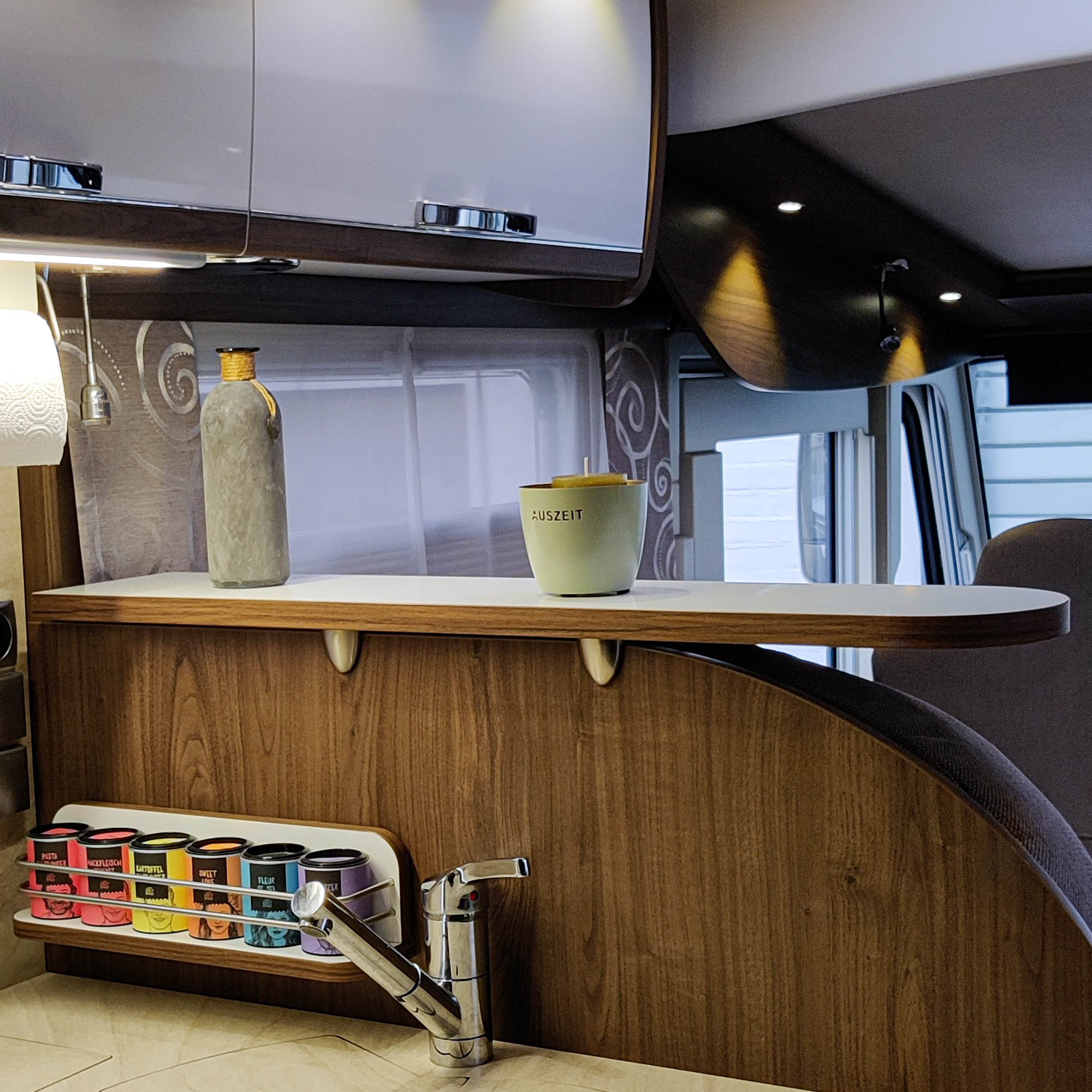 Onze opbergplank in plaats van hoofdsteunen in uw camper