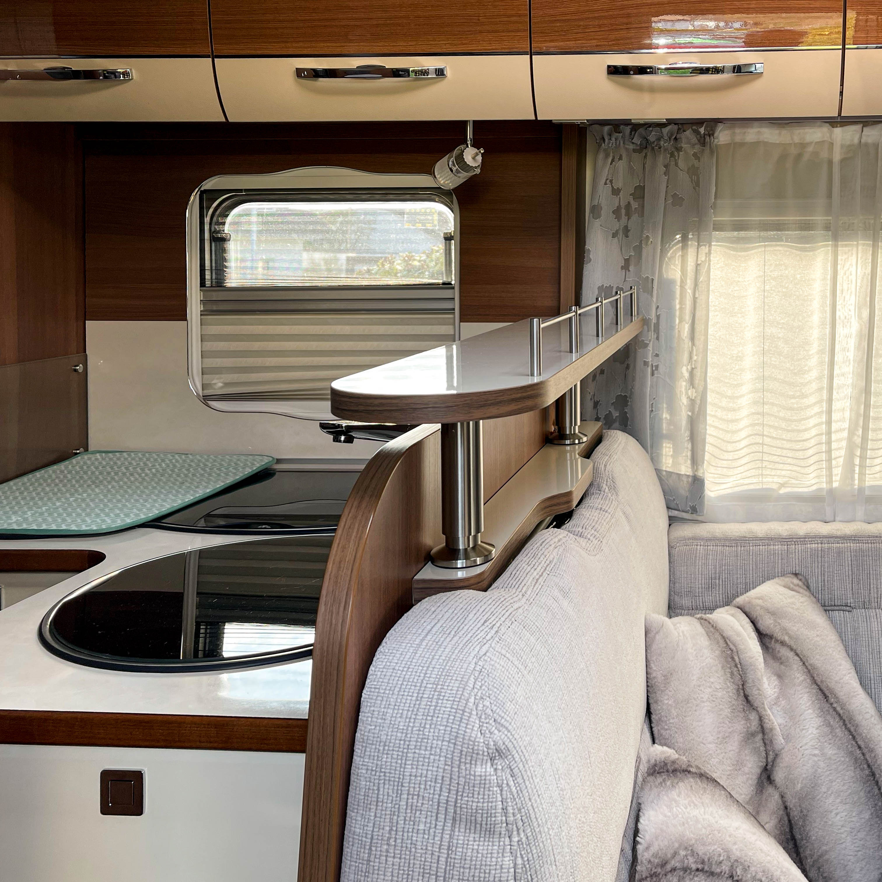 Onze opbergplank in plaats van hoofdsteunen in uw camper
