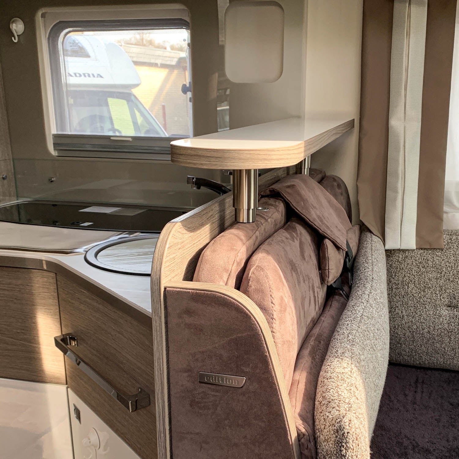 Onze opbergplank in plaats van hoofdsteunen in uw camper