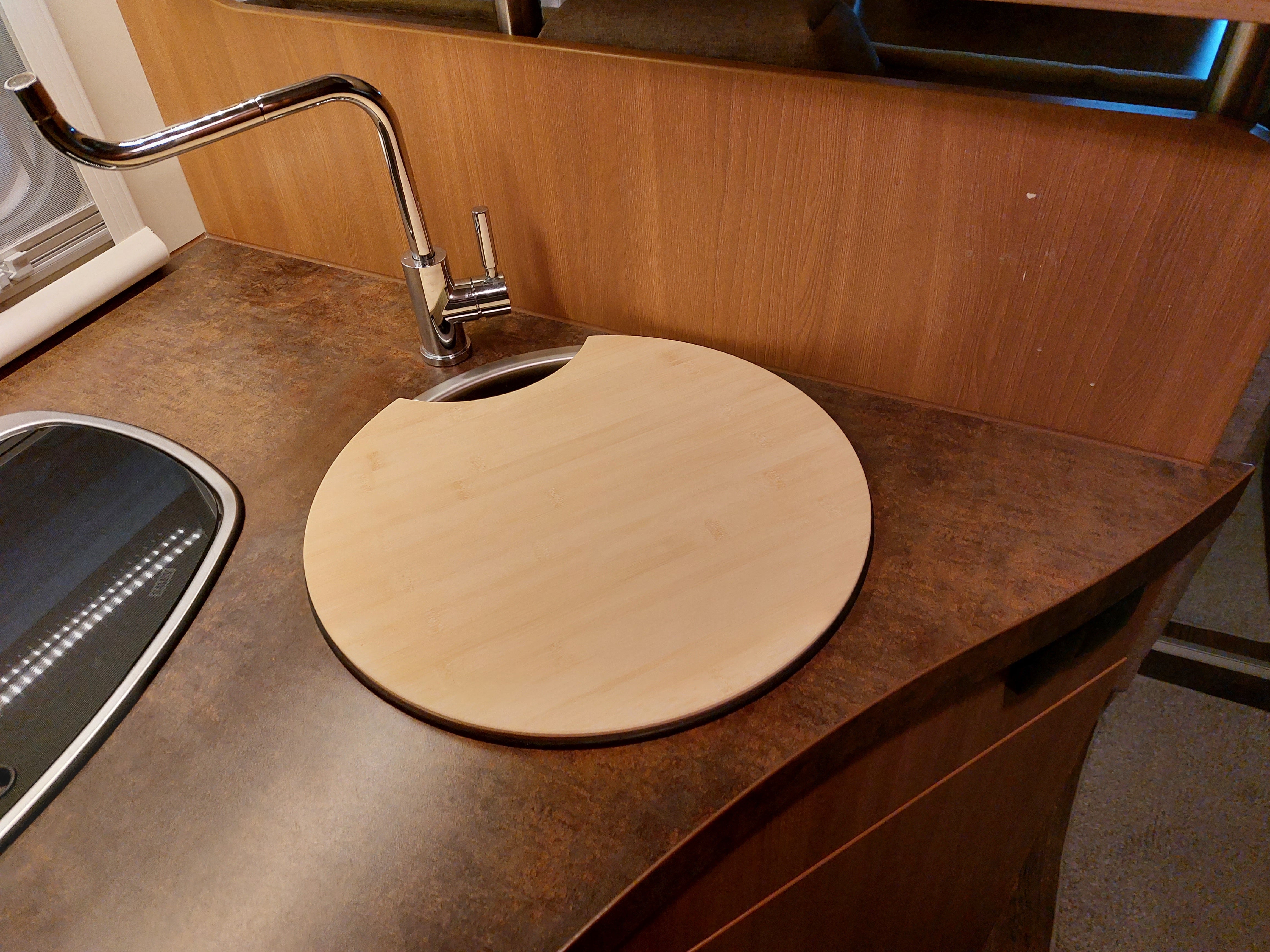 Onze bamboe snijplank voor het aanrecht in uw camper